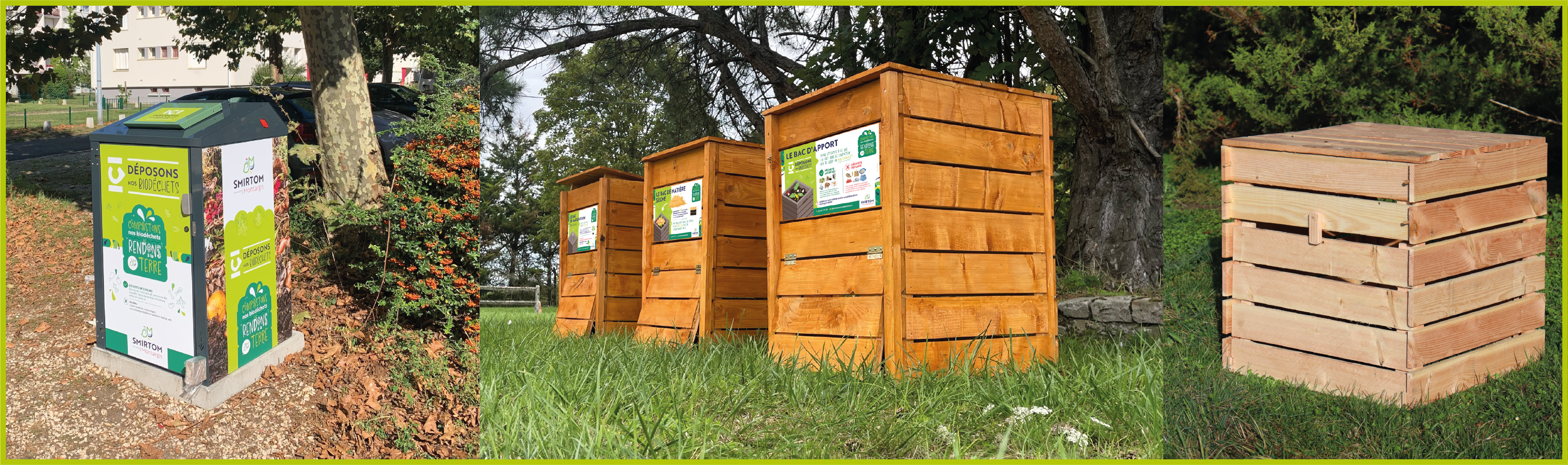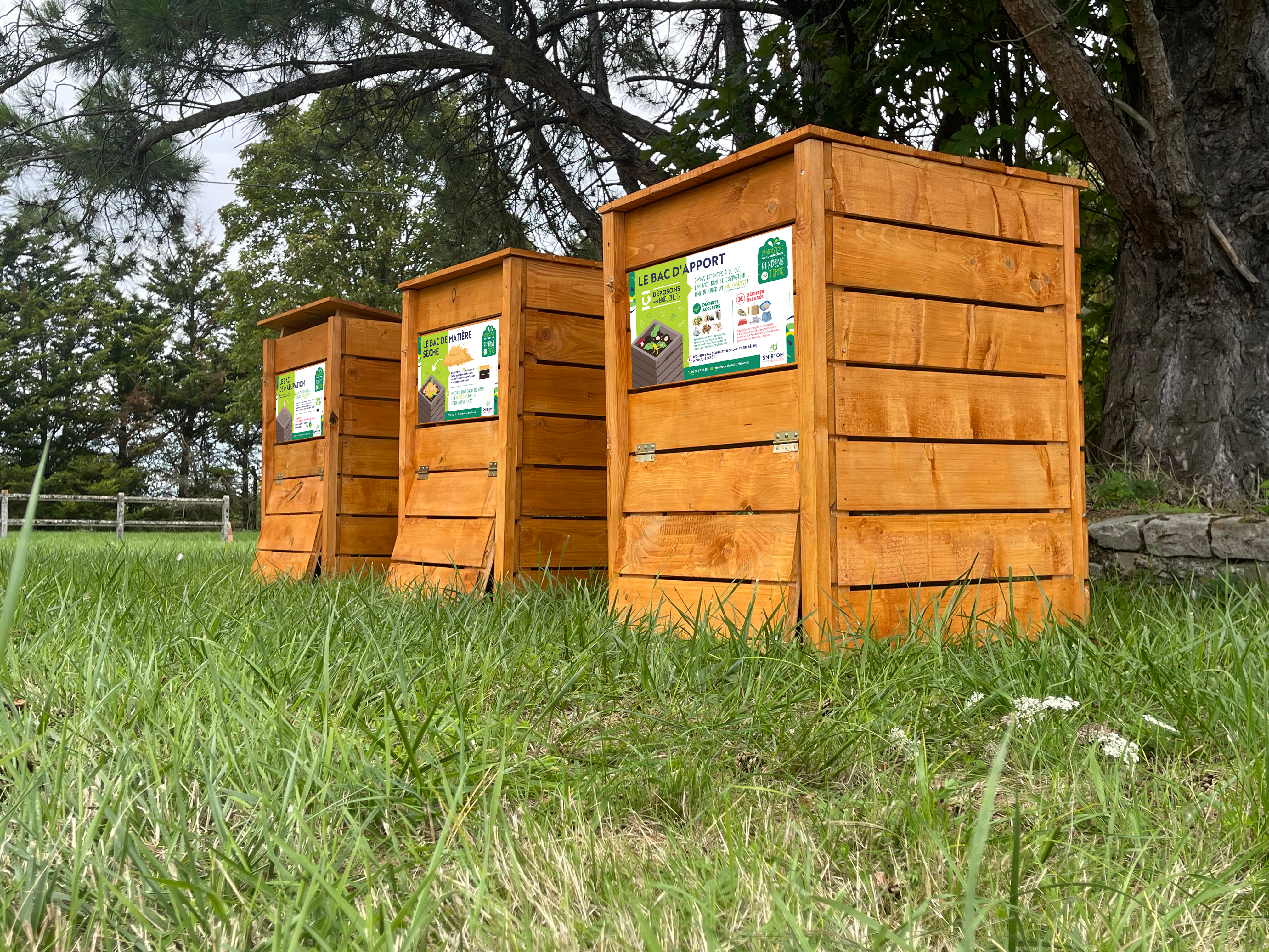 Le compostage partagé consiste à installer 3 bacs à compost (Bac d’apport, Bac de Matière sèche, Bac de maturation) afin que les personnes volontaire puissent déposer leurs biodéchets.