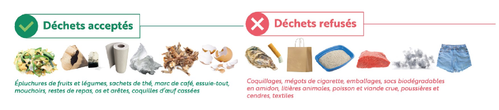 Les déchets de maison : cendres de bois, mouchoirs en papier, essuie-tout, etc